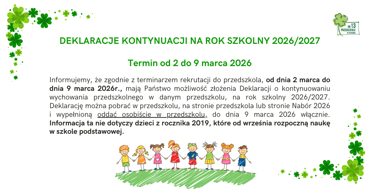 DEKLARACJA O KONTYNUOWANIU WYCHOWANIA PRZEDSZKOLNEGOPobierz